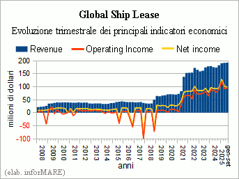 Global Ship Lease (GSL) has once again increased the volume of turnover having recorded in the third quarter of 2025 revenues of $192.7 million, a record value that represents an increase of +10.7% over the same period in 2024. Operating profit was €99.2 million (+7.6%) and profit net of $95.0 million (+95.0%).