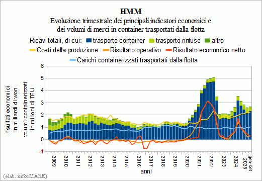 Comme les autres grandes compagnies maritimes conteneurisé dans le monde entier, au troisième trimestre de cette année également HMM a enregistré une nette détérioration de ses performances déterminée par la réduction de la valeur des droits de douane expédition, détérioration qui, comme pour d’autres transporteurs du marché, pour la compagnie sud-coréenne c’était particulièrement marqué.