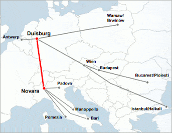 Hupac will start a new shuttle train service between Duisburg and Novara
