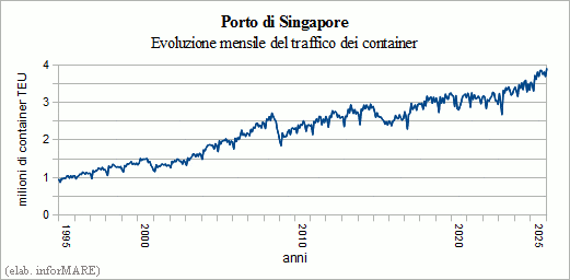 On December 31, the Port of Singapore closed 2025 with new historical records of annual and monthly traffic of the containers, confirming its position as the world's second largest container port in the behind the Chinese port of Shanghai and in front of the Chinese port of Ningbo-Zhoushan. The Maritime and Port Authority of Singapore (MPA) announced today that last year the new historical peak of containerized traffic amounted to 44.66 million TEUs, with an increase of +8.6% over 2024. This volume of traffic implies that in December 2025 alone, the port of call of Singapore handled over 3.9 million TEUs, as constitutes the new absolute monthly record and represents a growth of +10.1% over December 2024. In addition, in the fourth quarter in 2025, the total handled is more than 11.4 million TEUs, a volume that sets a new record for this time of year and is lower only than the historical record of 11.5 million TEUs recorded in the third quarter of 2025.