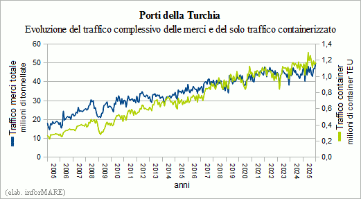 In 2025, Turkish ports handled a record traffic of 553.3 million tons of goods (+4.0%)