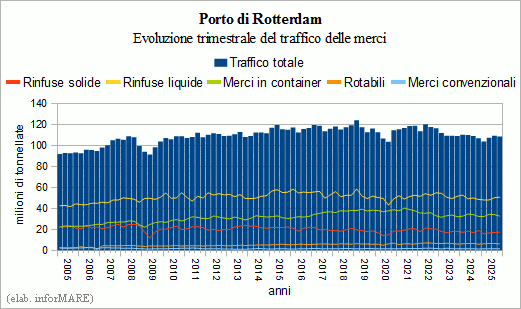 raggiungendo 25,6 milioni di tonnellate. Lo scalo portuale olandese