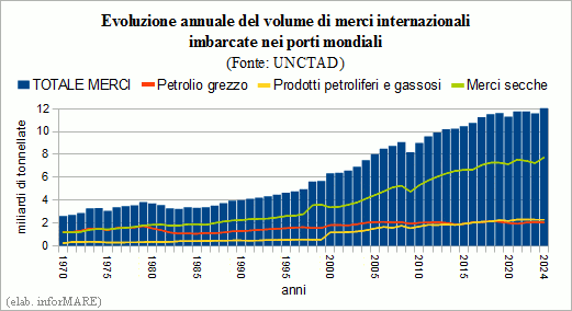 In 2024, international sea freight traffic reached a record 24.1 billion tons
