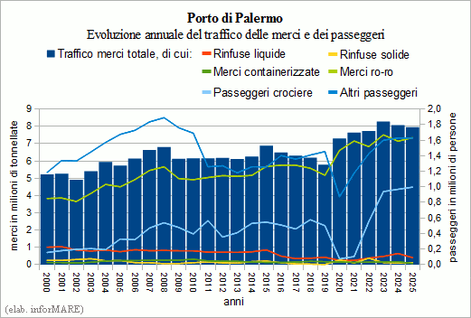 In the whole of 2025, the port of Palermo handled 7.95 million
