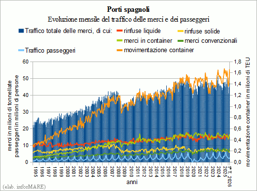 7,0 millones de toneladas de mercancías, con un aumento del +5,2% respecto al año anterior.